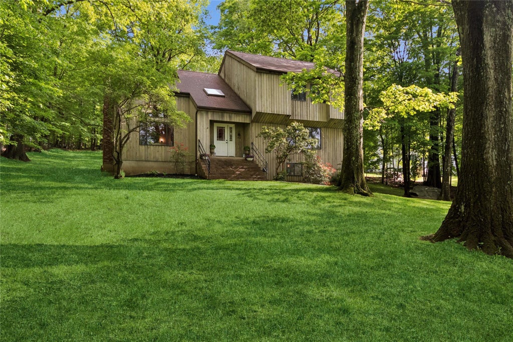 Prepare to be impressed with this beautifully maintained 4-bedroom 2.5-bath Contemporary Colonial. Nestled on a quiet and private 1.51-acre lot, set back from the road, this property offers exceptional curb appeal and a serene tree-lined setting. A welcoming entry foyer featuring a skylight and wood-accented vaulted cathedral ceiling, sets the tone for this bright and spacious home. The main level features a modern and elegant kitchen that balances aesthetics with functionality, making it a space that is both beautiful and practical for everyday use. Highlights include sleek quartz countertops, a stylish tile backsplash, stainless steel appliances, a large center island, abundant white wood cabinetry and a built-in desk area—perfect for everyday convenience. The open-concept layout seamlessly connects the kitchen to the family room, which showcases a wood-accented vaulted cathedral ceiling, skylight, brick faced wood-burning fireplace and a breakfast area with sliding glass doors leading to a generous deck—ideal for outdoor entertaining. Additional main-level features include a formal dining room, spacious living room, powder room, and a convenient laundry room. Upstairs, a lovely primary bedroom suite offers a private balcony overlooking the backyard, walk-in closet, dressing area and ensuite bath with white modern finishes including vanity and tub/shower combination. Three additional bedrooms w. ample closet space, a stylish hall bath w. two separate vanities and tub/shower combination and a spacious attic complete the second level. The lower level basement (approx. 572 sq. ft. not included in the total sq ft ) opens up exciting possibilities and adds valuable and versatile space for storage and/or entertainment. A spacious two-car garage and large driveway ensure plenty of parking for all. Surrounded by nature, the wooded backyard offers a serene and private oasis for relaxation and recreation. Notable upgrades include beautiful wood finishes throughout, recess lighting, water filtration system and water softener. With its thoughtful design, updated interiors and spacious layout, this home effortlessly caters to both entertaining and day to day living, making it a haven for all aspects of modern life. Close to major roadways, transit, parks, schools, restaurants, shopping and more! Move right in and enjoy all this home has to offer! Don't miss this opportunity to make this exceptional property your own. Taxes do not include Star deduction of $882.00 if applicable.