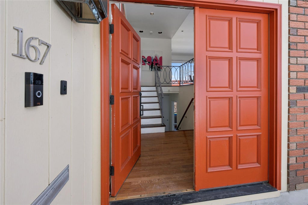This single family contemporary home is located in Hastings-on-Hudson with breathtaking year-round views of the Hudson River and Palisades. This spacious residence offers 2,620 square feet of primary living space plus 436 sf of additional finished lower level space which walks out to the yard. Open, light-filled, modern, peaceful, and comfortable are all words that will come to mind as you explore 4 bedrooms (lives as a 5 bedroom) and two and a half bathrooms. The home's architectural charm is highlighted by recent renovations of built-ins and expansive floor-to-ceiling windows that flood the space with natural light. The main level boasts beautiful natural hardwood floors and a cozy fireplace, perfect for relaxing evenings. The beautiful kitchen is efficiently designed with double Thermador built-in ovens, and stainless appliances and views of the river and the Palisades while cooking. The adjacent dining area and living room provide ample space for entertaining guests with floor to ceiling windows that bring the outdoors inside. There is also a 4th bedroom or den plus a full bath completing the main floor. Down one level, you'll find three bedrooms, each offering a serene retreat with generous closet space. The primary suite includes an en-suite bathroom, offering privacy and convenience, plus a private deck facing the river. Two additional bedrooms and hall bath complete the bedroom level. The lower level has additional storage space which can be tailored to your needs, a gym/yoga studio, plus two rooms that are great as offices or playrooms; both have access to the backyard. The home also features a media/recreation room, ideal for movie nights or game days. The tile floors and central AC ensure comfort year-round. A powder room and laundry area with a washer and dryer add to the home's functionality. Discover the perfect blend of comfort and style at 167 Broadway. This home presents a unique opportunity to enjoy all that Hastings-on-Hudson has to offer. There's parking on Broadway, or you can drive down to the front of the home into the garage. Don't miss your chance to make this house your new home.