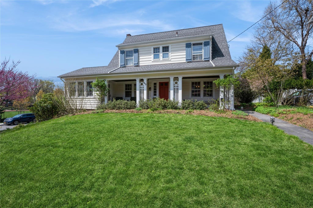 Welcome to 43 South Calumet Avenue, located in the sought-after Riverview Manor neighborhood of Hastings on Hudson! This delightful home offers a perfect blend of modern comforts and timeless charm plus wonderful curb appeal and a prime location. As you approach the property, you'll be greeted by a welcoming covered porch, the perfect spot to enjoy your morning coffee or relax in the evenings. Step inside to discover a spacious living room with a cozy fireplace and French doors leading to a covered porch and backyard..The formal dining room features a built-in corner china cabinet, adding to the inherent charm. The updated kitchen is a chef's dream, featuring a center sitting island, stainless steel appliances, a built in window banquette, and a large pantry for all your storage needs. Whether you're hosting a dinner party or preparing a quiet meal, this kitchen provides both functionality and style. The kitchen door brings you to a covered porch and level, fenced yard - perfect for outdoor dining, entertaining, gardening and relaxing. The main floor also enjoys a powder room and a light filled sunroom with a separate entrance from the front porch, ideal for a home office or family room. Upstairs you will find three generously sized bedrooms and an updated full bath. The location is second to none, with seasonal views of the Palisades and easy access to all schools, train, village shops, restaurants, community pool, tennis courts and several nearby parks and trails. Experience the perfect blend of tranquility and convenience in this charming home.