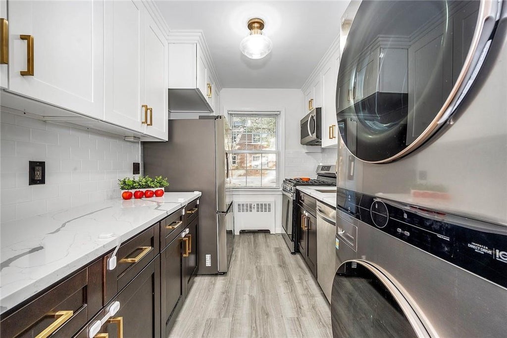 Welcome home to this light, bright, and meticulously maintained 1-bedroom unit at sought after Rex Ridge. This top-to-bottom renovated first-floor apartment features its own private entrance. The kitchen has been elegantly updated (December 2022) with stainless steel appliances (including dishwasher and full-size washer and dryer) and quartz countertops. Neat and clean spa-like bathroom redone in 2022. Hardwood floors throughout, generously sized rooms and overall great flow. A bonus is the personal outdoor space—unit’s own patio and barbecue. Complex amenities include pool and large playground. Close to all—Metro North Train, public transportation, highways, shops, restaurants.