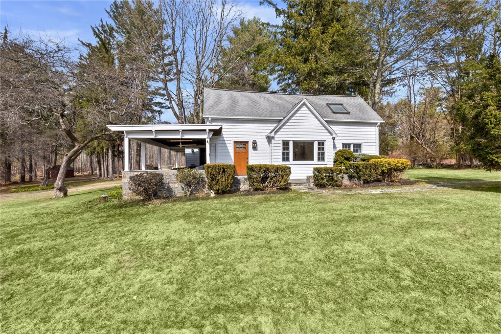 Welcome Home! Step into timeless charm with this beautifully maintained 3-bedroom, 2-full bath farmhouse-style home set on a picturesque, park-like property with mature trees, stone walls, and lush landscaping. Inside, the spacious living room welcomes you with gleaming hardwood floors, a wood-burning brick fireplace, and large sliders that open to a covered porch—perfect for enjoying peaceful mornings or entertaining guests. The cozy kitchen is a true delight, featuring soapstone countertops, exposed beams, a vaulted ceiling, a convection oven with an electric cooktop, and a wood-burning stove set against a charming brick wall. The sun-filled dining room offers direct access to yet another inviting side porch. A large family room boasts oversized windows with serene views of the private backyard, creating a perfect space for relaxation. The first-floor primary bedroom provides convenience and comfort with ample closet space and easy access to a full bathroom. A second bedroom rounds out the main level, offering flexibility for guests, a home office, or additional living space. Upstairs, you'll find a sunny third bedroom, a cozy TV room, a full bathroom, and a flexible office space—ideal for working from home or creative pursuits. Outside, this level, park-like property includes three outbuildings: two large sheds and a detached garage with additional storage. A generator hookup ensures peace of mind year-round. Best of all, enjoy deeded rights to Wixon Pond, offering the perfect outdoor escape just moments from home. Conveniently located close to schools, shopping, 684 & the Taconic, train, bike bath, hiking and more! Don't miss the opportunity to make this one-of-a-kind farmhouse your own—schedule your private showing today!