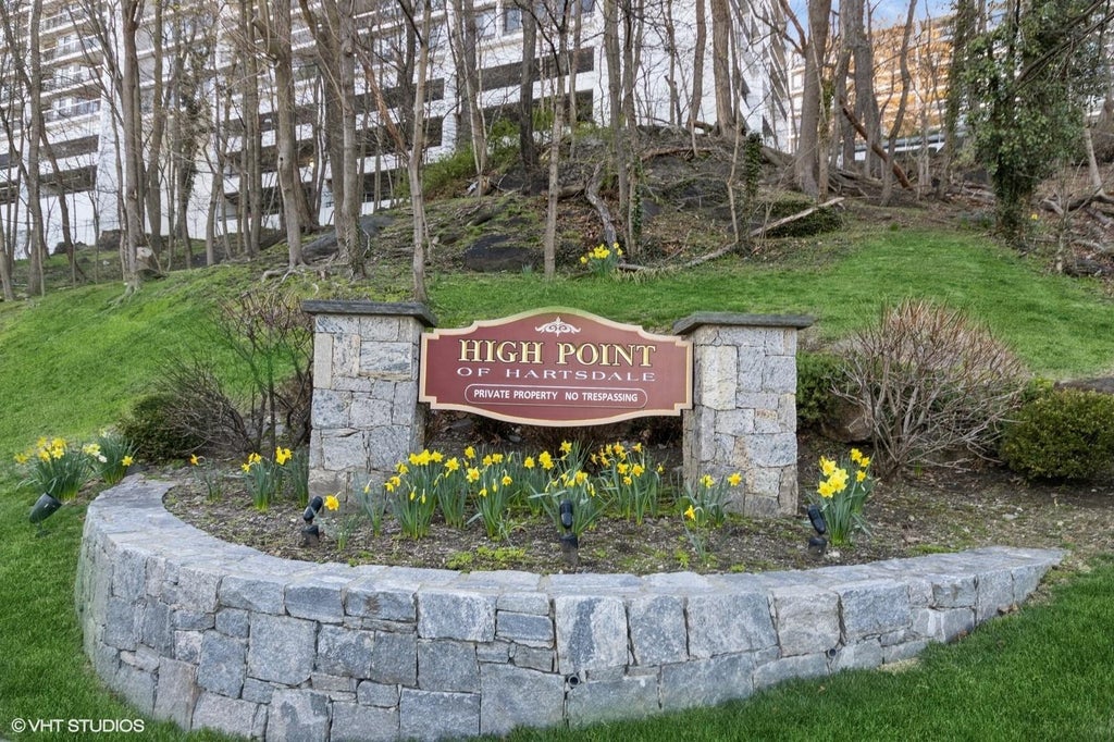 Welcome to the top!!! Beautifully appointed 2-Bedroom Condo with expansive Living Room featuring wood floors, sleek electric fireplace (inserted within a real wood-burning fireplace) and a wall of windows allowing lots of natural light. The Dining Room is generously sized for entertaining and leads out to the balcony with beautiful views of the White Plains skyline. The eat-in-kitchen's gorgeous quartz countertops compliment the white cabinets, and has storage galore. The Primary Bedroom Suite has lots of natural light, a walk-in-closet that will delight, as well as a roomy Full Bath. Bedroom #2 is ideal for your needs whether it be a bedroom, guest room, or home office. A Full Hall Bath with plenty of storage rounds out the home. This is a gated community w/manned gate-house, beautiful entry lobby, 2 elevators, laundry on each floor, community pool, club house and gym. Deeded covered parking spot adjacent to the building, and ample visitor spots to accommodate. Convenient to shopping, restaurants and transportation. Hop/skip to White Plains. SELLER PAYING OFF ASSESSMENT (approx $62k) BEFORE CLOSING!!!!