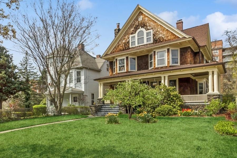 Step back in time! This one-of-a-kind Cedar sided Colonial is a perfect new home for anyone who appreciates sensitively restored 1908 craftsmanship & finishes seamlessly, updated to accommodate modern living. The expansive, newly refinished, wrap-around, covered porch, gives access to the surprise - a grand, oak paneled Parlor with an impressively mantled fireplace, as well as a sweeping staircase adorned with several, lovely stained glass windows soaring to the 3rd floor. A pair of French doors lead to the gracious Livingroom which features a bay window, built-in shelves and a fireplace for cozy evenings. Beyond the Parlor, through an elegant archway, is the formal dining room with its lofty, beamed ceiling - it can easily seat a large extended family for special occasions or host more intimate affairs. The renovated, well-planned, spacious chef's kitchen with its Butcher block island adjoins a cheerful breakfast room. From there, passing the laundry and powder room, one reaches the rear Patio/deck that features a small view of the Palisades in the distance and overlooks the lush, fenced garden which is filled with flowering, low maintenance perennials blooming throughout the seasons. There's no need to start a vegetable garden - one is all ready to go and just the right size. Completing the 1st floor, just, off the Dining room, pocket doors give privacy to a secluded study filled with bookshelves.