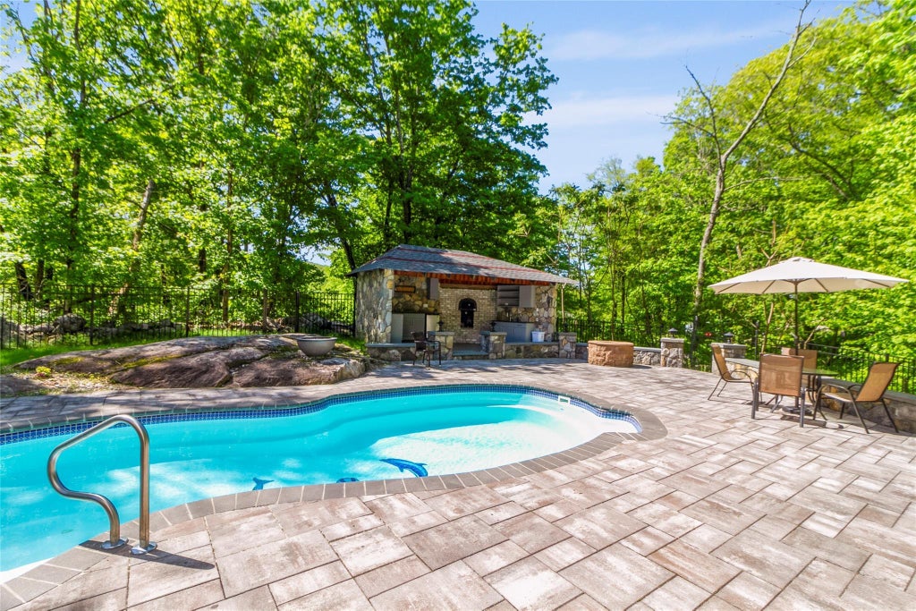 Private oasis with newly constructed (2025) house in Mahopac. Close to highways and RR for the commuter. In ground heated pool and stone patio. Full outdoor bar with pizza oven, fireplace and bar sink for entertaining. New house with open floor plan. High end kitchen with door to deck. Family room with bar flows in living room with gas fireplace. Dinning room off kitchen. Hallway with half bath completes first floor. Primary bedroom with large closet and primary bath done in tile. Another large bedroom. Hall full bath. private laundry room on second floor. House has hardwood floors throughout. With ownership come Long Pond Lake association for swimming, fishing, non power boating and get togethers. Not buying just a house, you're buying a life style.
