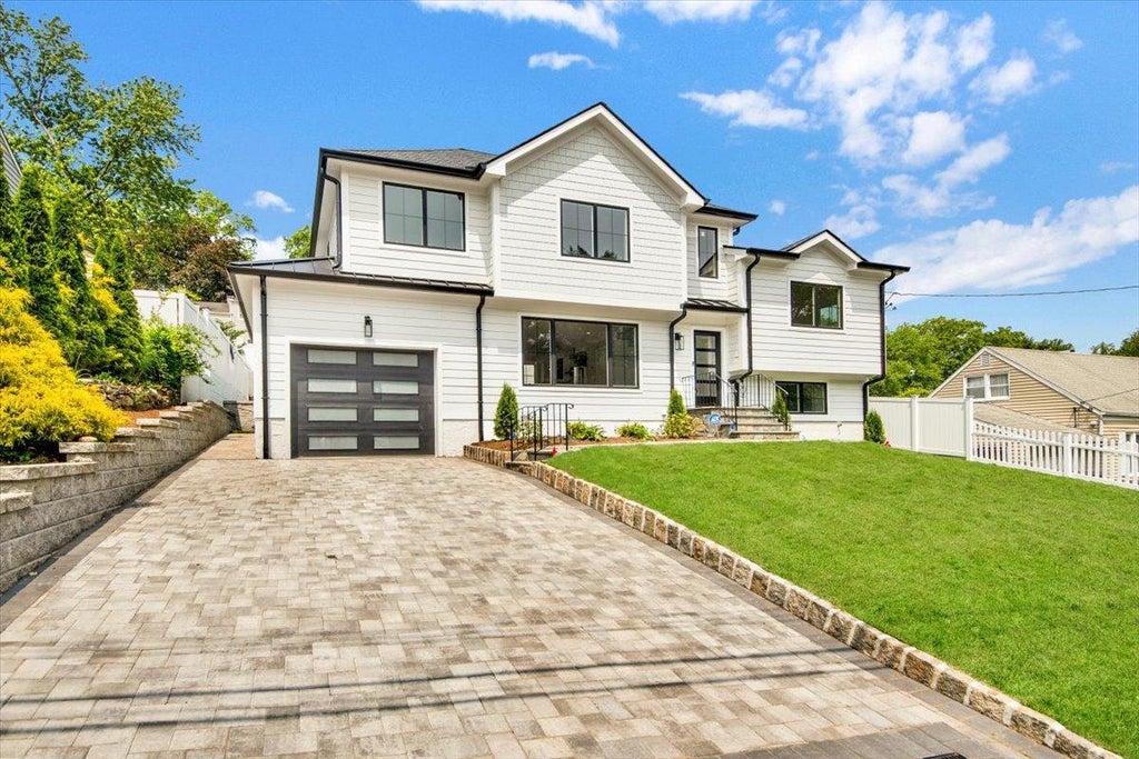 Stylish. Smart. Sophisticated. Better than new construction and truly move-in ready, this one-of-a-kind custom home sets a new standard in luxurious suburban living. Perfectly situated in one of Yonkers’ most coveted neighborhoods, you’ll enjoy effortless access to schools, shops, Metro-North, public transportation, highways, and parkways — all while tucked into a peaceful, beautifully landscaped setting. From the moment you step inside, you're welcomed by a dramatic two-story foyer with soaring ceilings, custom trim work, and a breathtaking staircase that sets the tone for the entire home. The open-concept main level boasts seamless flow from the sun-drenched living room to the show-stopping chef’s kitchen. The kitchen features custom cabinetry, quartz countertops, under-cabinet lighting, an oversized island with seating, striking tile backsplash, built-in bar with wine cooler, and top-of-the-line Monogram appliances. Just beyond, sliding glass doors lead to a serene, fully fenced backyard — complete with a paver patio, lush sod lawn, professional landscaping, in-ground sprinkler system, and space to relax or entertain in style. Upstairs, find generously proportioned bedrooms, custom closets, and illuminated hallways. The luxurious primary suite is a private retreat, featuring a spacious bedroom, walk-in closet, and spa-inspired bath with designer finishes. A convenient second-floor laundry room adds to the thoughtful layout. No detail has been overlooked — raised wood paneling, extensive molding, recessed lighting, built-in Sonos speakers, and picture frame TVs throughout elevate the everyday. The lower level offers a versatile family room with separate entrance and a chic half bath — ideal for entertaining, guests, or a home office setup. An oversized paver driveway, temperature-controlled garage with soaring ceilings, and a standout modern exterior featuring white Hardi siding, dramatic black-framed windows, rounded black gutters, and black standing seam metal roof complete the package. This is more than a home — it's a lifestyle.