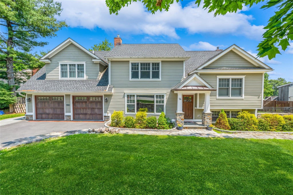 Welcome to 14 Harvard Lane —a modern sanctuary that seamlessly blends comfort and style. This 4-bedroom, 2.5-bathroom home spans 2,698 square feet and is situated on a generous .30 acre lot. Built in 2015, this residence has been thoughtfully updated over the past decade, ensuring a contemporary living experience. As you arrive, the beautifully landscaped circular driveway, accentuated by elegant stone walls, invites you in. This theme continues throughout the backyard, providing a serene and private atmosphere. The highlight of the outdoor space is a covered back porch equipped with a full outdoor kitchen. From here, step down to a spacious stone patio with an outdoor fireplace, perfect for entertaining or relaxing under the stars. Inside, the expansive open-concept kitchen and dining area is a chef’s dream, featuring ample cabinet storage and top-of-the-line stainless steel appliances, including a double wall-mounted oven, large refrigerator, gas cooktop, dishwasher, wine cooler, and a microwave elegantly integrated into the large kitchen island. The primary suite extends beyond expectation with an office/gym, and two walk-in closets, plus an additional third closet. The primary bathroom offers a luxurious escape with a large jacuzzi tub, dual sinks, and a full shower. Additional features include a large two-car garage with a treated floor for durability and an additional 420 sq ft on the lower level family room, which leads directly to the backyard patio. This space enjoys the warmth of a wood-burning stove, making it the perfect retreat during cooler months. Hardwood floors flow throughout the home, complemented by ceramic tile in the lower-level family room. For those seeking a combination of modern amenities and timeless elegance in a peaceful setting, 14 Harvard Lane offers it all. Don't miss the opportunity to make this exceptional property your own. Please see floor plan in documents.