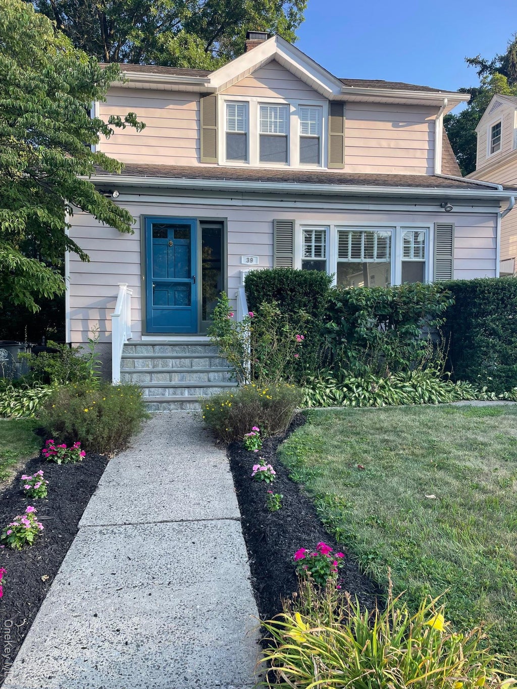 Charming 3-bedroom Colonial with hardwood floors throughout on a spacious level yard and quiet street. The first floor boasts an entry hall/mudroom with double coat closet. The sunlit living room has a beautiful stone fireplace with built-in shelving and connects to a bright den with lots of natural light and pocket door for added privacy when needed. The formal wainscoted dining room is a warm and inviting room. The modern eat-in kitchen features white cabinetry with tiled backsplash and views through a sliding glass door to the back deck and a spacious level fenced in yard. A powder room completes the first floor. Upstairs there is an oversized primary bedroom with lots of closet space, two additional bedrooms and an updated hall bath. There is a walkup attic for storage and the lower level offers laundry and plenty of storage space. Blocks from Metro-North, shopping, downtown White Plains and major highways. Close to bike/walking trails.