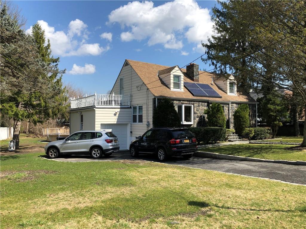 4 Bedrooms plus a Den - 4 Bathrooms. Unique & thoughtfully renovated stone-front Cape Cod. Close to shopping, restaurants, express bus to NYC, a 4 min drive to the train station. Living room has a bay window & a new fireplace surround. New hardwood flooring throughout first floor. Entertain in this well-appointed home, whether it be by the fireplace in the winter or on the deck on warm summer nights. On the 2nd floor you can sip an iced coffee on the rooftop deck while the solar panels soak up the sun and the sprinkler system keeps your grass green. Enjoy cooking in the sun-drenched kitchen, boasting stainless steel appliances, granite counters, a greenhouse window and door to back deck. The dining room features built-in cabinetry. Main level has 2 BR. 2 more bedrooms upstairs (one has access to the rooftop deck over the garage) and a full bathroom. Finished Walk-out basement with full bathroom 900 sq ft (storage only-not included in total sq. footage) Den with private entrance. Additional Information: ParkingFeatures:1 Car Attached