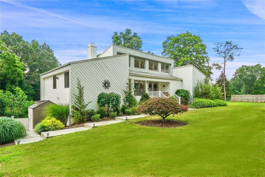 Modern Charm. This unique Contemporary mother daughter home is situated on three semiprivate acres, set back far off beautiful country road. Completely turnkey offering many tasteful upgrades. Sun drenched main floor offers open floor plan with soaring ceilings and combines living, dining and kitchen all in one making it the perfect space for entertaining large gatherings. Primary suite has walk-in closet, luxurious bath and door out to sprawling deck which overlooks private rear yard. The additional two bedrooms on the main floor have a Jack and Jill bathroom. Lower level has private entry into apartment which features living room, bedroom, full bath, updated kitchen and private patio. There's also an additional recreation room and half bath. Enjoy dining al fresco on the newly refinished, private deck or lounging around the custom fire pit. Backyard is completely fenced in. New bluestone walkway and front stoop. Professionally landscaped for those that appreciate perennial gardens. Those that are into saving energy will appreciate the solar panels installed. There are 8.5 years left on the loan. New AC and circulator. Workshop/home office off garage is heated and cooled. Perfect commuter location, only minutes to highway, town and Metro North train station. Additional Information: HeatingFuel:Oil Below Ground,ParkingFeatures:1 Car Attached