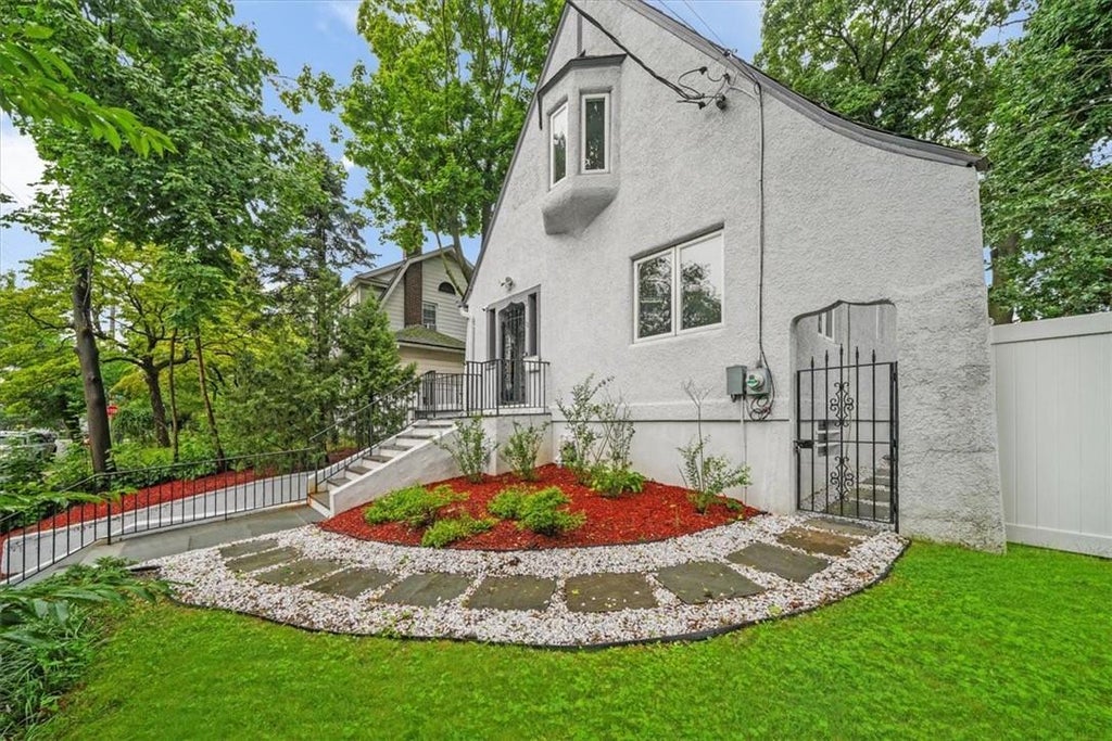 Stunning Tudor-style home with a new slated roof and an attractive stucco finish with natural light abounds in the heart of Bryn Mawr, Yonkers. The entrance leads to a sunny, generously spacious living room with a cathedral ceiling, a working fireplace, and prefinished hardwood floors. The updated open-concept kitchen has Shaker cabinetry, granite countertops, a center island, and stainless steel appliances. The first floor is complete with a primary bedroom and an ensuite bathroom. The second floor features two additional bedrooms with a luxury bathroom accessed from the 2nd floor primary bedroom. The lower level features a finished room, laundry room, well-appointed half bathroom, and attached one-car garage. Sliding glass door leads to large deck with enclosed backyard. Accessible to major highways (I-87 and Parkways), XP Buses, Central Park Avenue, Ridge Hill, and Cross County Shopping. Additional Information: HeatingFuel:Oil Above Ground,ParkingFeatures:1 Car Attached