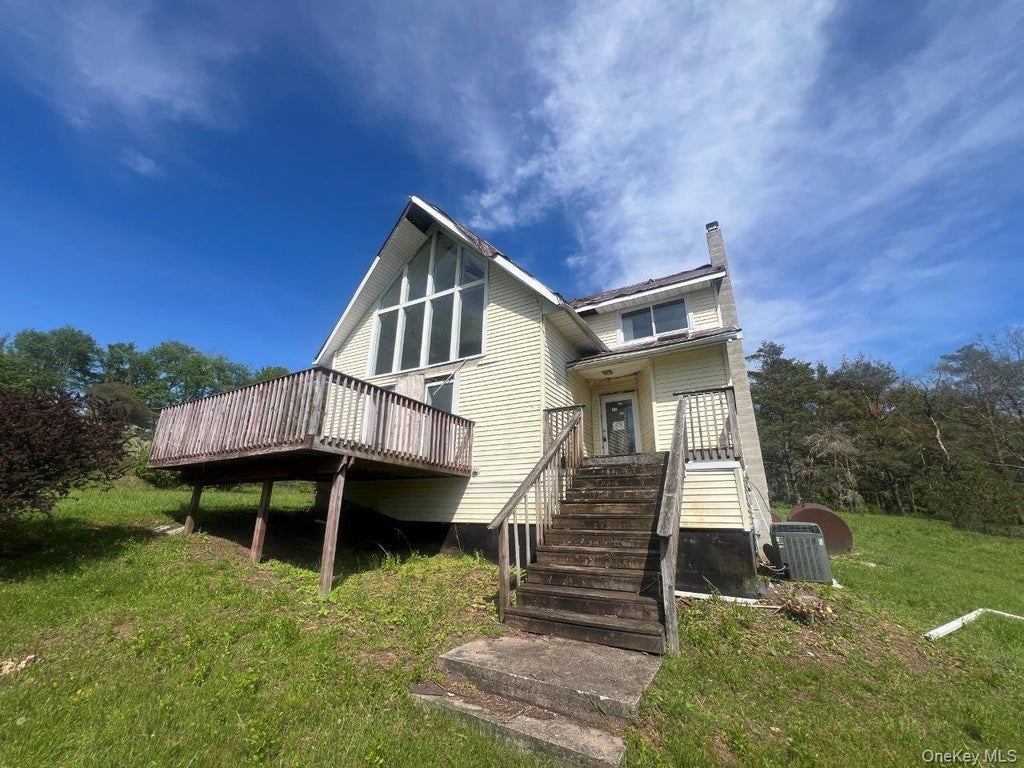 Unique two bedroom contemporary home on 28.70 acres in T/Bethel! Incredible panoramic views. Great opportunity to renovate or build your dream house. Close to the Resorts World and Bethel Woods and Sullivan County lakes. Includes 3 parcels, 12.1-4-4, 2.5 acres, 12.1-4-3, 2.5 acres and 12.1-4-2, 23.7 acres! Sold as-is. Buyer to pay NYS and any local transfer taxes. Offers with financing must be accompanied by pre-qual letter; cash offers with proof of funds. **Please see agent remarks for access, showing instructions and offer presentation remarks.**